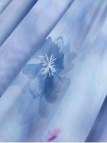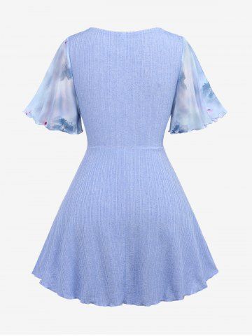 Haut grande taille à imprimé aquarelle florale, décolleté cache-cœur, empiècements chaînette, volants froncés et ourlet tulipe - Bleu Clair - Bleu Clair