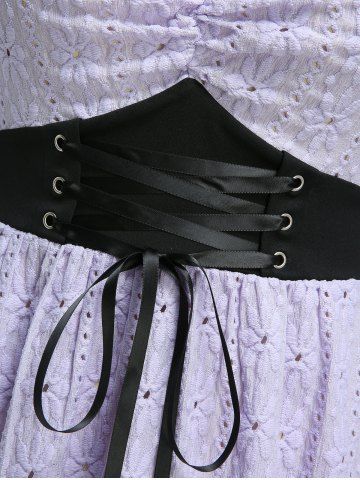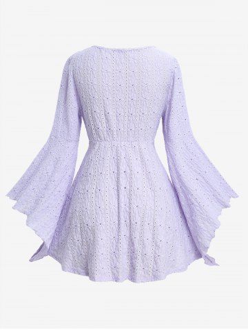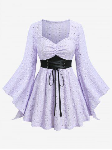 Haut grande taille à lacets, fronces, découpes ajourées et broderies florales, manches évasées - Violet Lilas - L | Us 12