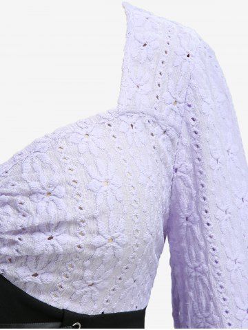 Haut grande taille à lacets, fronces, découpes ajourées et broderies florales, manches évasées - Violet Lilas - 3x | Us 22-24