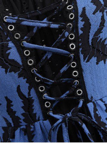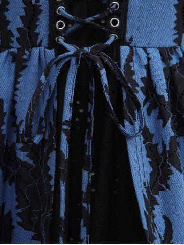 Haut Superposé Evidé Fleuri Imprimé à Epaule Dénudée en Jacquard de Grande Taille - Bleu Profond - M | Us 10