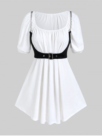 Top Tunique en Couleur Unie Grande Taille et Corset Bouclé avec Chaîne - Blanc - Blanc