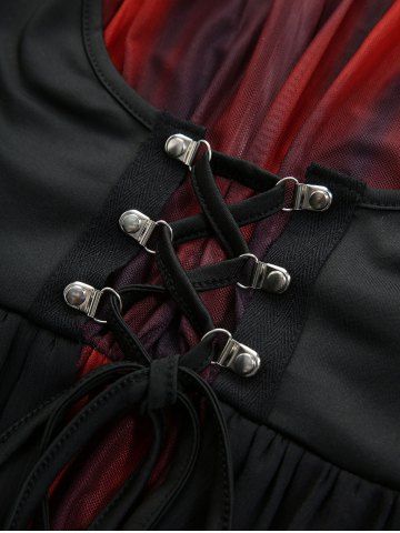 T-shirt Asymétrique Croisé Ombré avec Chaîne à Manches Papillon de Grande Taille à Volants - Noir - Noir