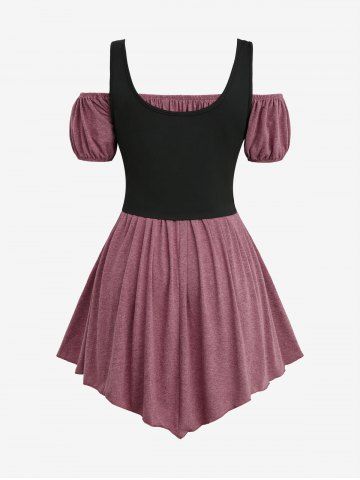 a*****e5Plus Size Medieval Renaissance Ruched Off Shoulder Asymmetrical Tee With Grommets Lace Up Marled WaistcoatColor: DEEP RED Size: 2X | US 18-20I loved this blouse, and the little corset that comes with it! Both are soft and comfortable, and you can use the corset with other tops.