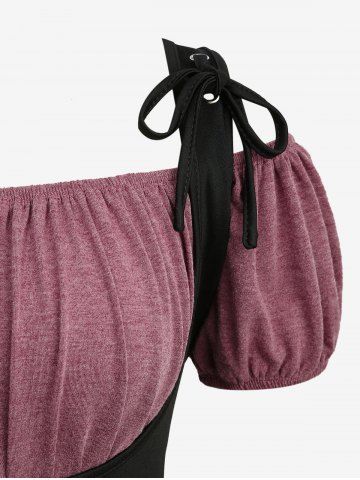 T-shirt asymétrique à épaules dénudées et à œillets, style Renaissance médiévale grande taille, gilet chiné à lacets - Rouge Foncé - L | Us 12