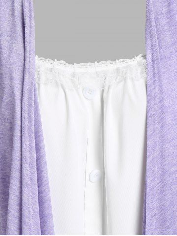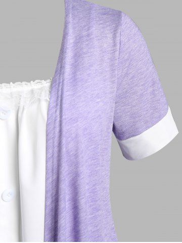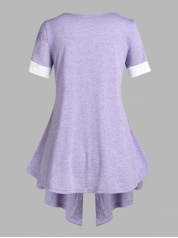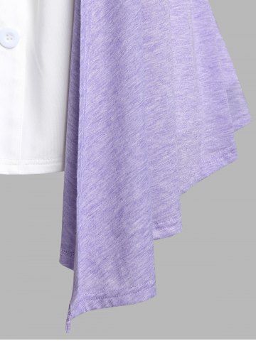 T-shirt Asymétrique Grande Taille Faux Deux Pièces - Violet Clair - Violet Clair