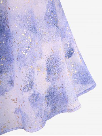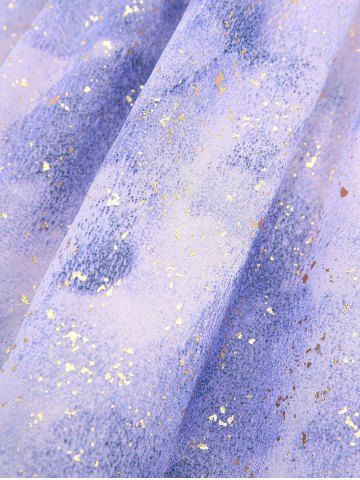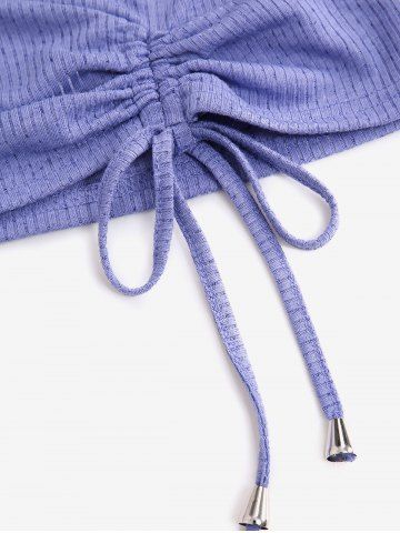 T-shirt Côtelé Texturé Teinté en Blocs de Couleurs à Paillettes de Grande Taille à Volants - Pourpre - Pourpre