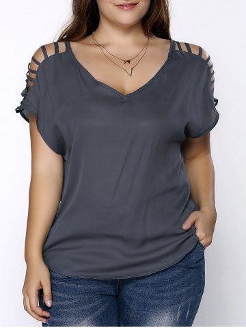 J*****y5Plus Size V Neck Ripped Sleeve TeeColor: BLACK Size: 5XLNice and pretty t-shirt. I swear a little top under to feel really comfortable with my bust! Looks very feminine! Great quality!