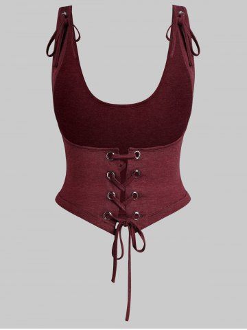 T-shirts > T-shirt Ourlet Courbe à Epaule Dénudée de Grande Taille et Gilet à Lacets