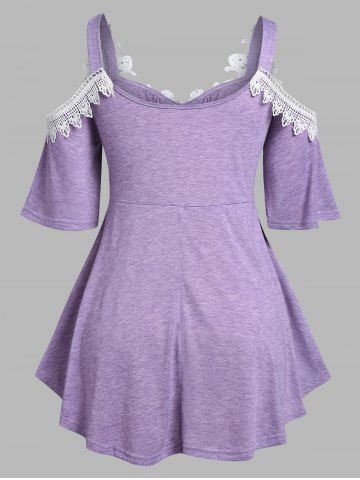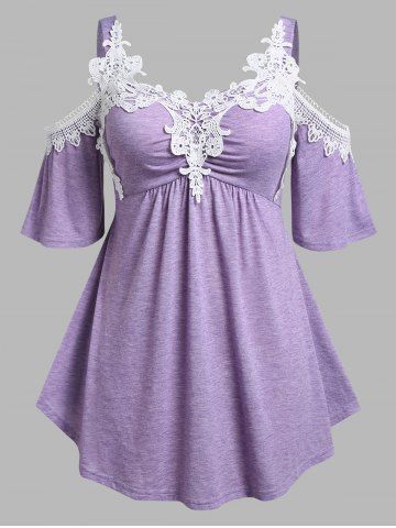 g*****e5Plus Size & Curve Lace Panel Ruched Cold Shoulder TeeColor: LIGHT PURPLE Size: 2XVery beautiful. great fit. Feels wonderful. fast shipping great service from one the best clothing sites around.