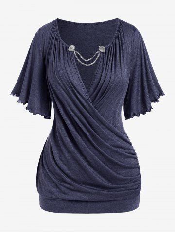 Plus Size Lettuce Ruched Chain Embellished Plunging Blouson Tee