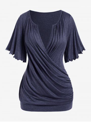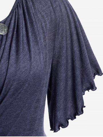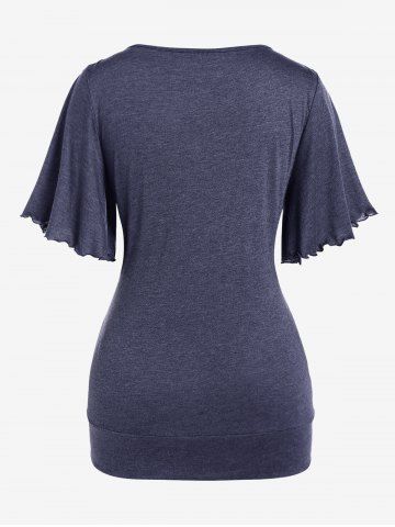 T-shirt Plongeant Embelli de Chaîne de Grande Taille à Ourlet en Laitue - Bleu Profond - 4x | Us 26-28