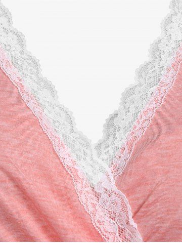 T-shirt Superposé à Brodure en Dentelle avec Fausse Perle de Grande Taille à Manches Courtes - Rose Clair - Rose Léger