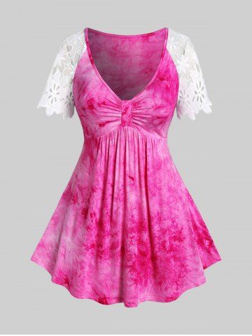 T-shirts > T-shirt Teinté Noué en Dentelle de Grande Taille à Manches Raglan