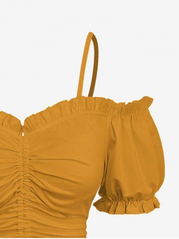 Débardeur à épaules dénudées, froncé et froncé, grande taille - Brun Doré - 4x