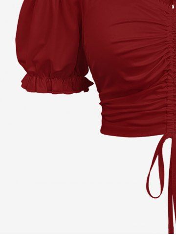 Débardeur à épaules dénudées, froncé et froncé, grande taille - Rouge Vineux - 4x