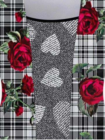 T-Shirts Graphiques > Plus Size 3D Rose Heart Plaid Printed 2 in 1 Tee