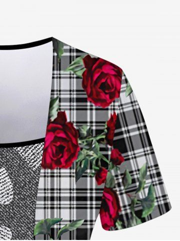 Plus Size 3D Rose Heart Plaid Printed 2 in 1 Tee - Noir - Noir