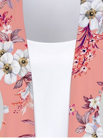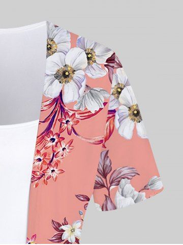 Plus Size Floral Print Asymmetrical 2 In 1 Top - Rose Clair - Rose Léger