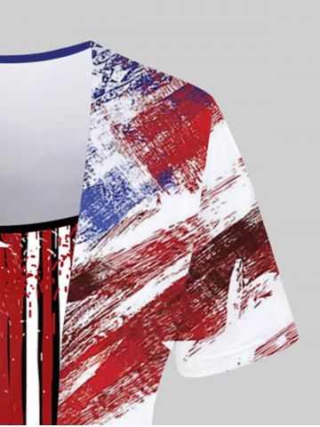 Plus Size Patriotic American Flag Printed Short Sleeves 2 in 1 Tee - Rouge - Rouge