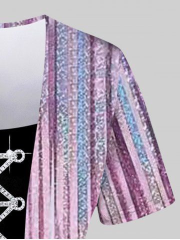 T-Shirts Graphiques > T-shirt 2 en 1 grande taille à œillets, lacets, rayures à sequins scintillants et imprimé 3D pailleté