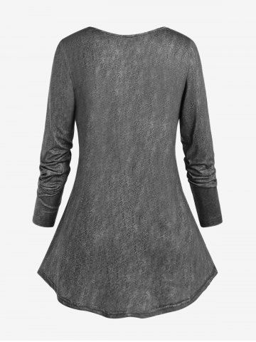 s*****z5Gothic 3D Jean Buckle Print Long Sleeve T-shirtColor: DEEP BLUE Size: 1X | US 14-16I love this top although the blue 1 was out of stock customer service were really good and I reordered the red which is lovely