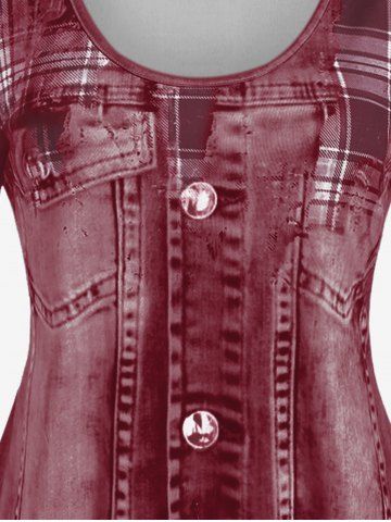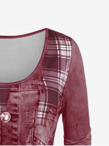 T-shirt à Imprimé 3D Jean de Grande Taille à Manches Longues - Rouge Foncé - 4x | Us 26-28