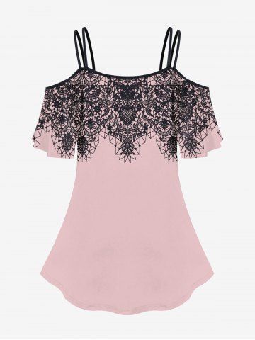 n*****y4Plus Size 3D Lace Print Cold Shoulder T-shirtColor: LIGHT PINK Size: 1X | US 14-16Very cute top. Was a little on the larger size. Material was nice as well.