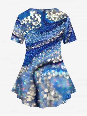 T-shirt à manches courtes grande taille à paillettes, sequins ombrés et imprimé colorblock rayé - Bleu - Bleu