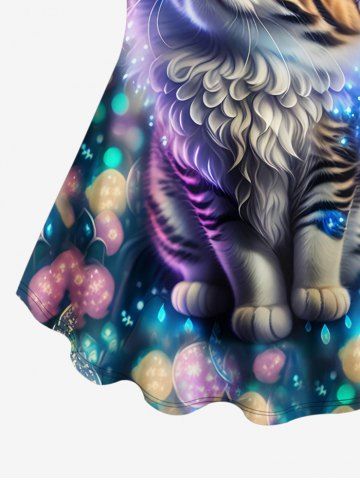 T-Shirts Graphiques > T-shirt à manches courtes grande taille avec imprimé chat à paillettes colorées, ballon et vagues, dégradé ombré