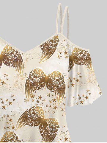 T-shirt camisole Renaissance grande taille à épaules dénudées et imprimé étoiles et ailes d'ange - Blanc De Crème - L