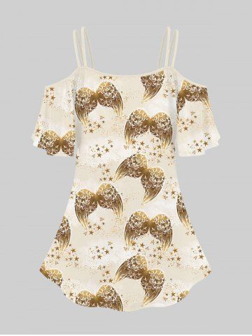 T-Shirts Graphiques > T-shirt camisole Renaissance grande taille à épaules dénudées et imprimé étoiles et ailes d'ange