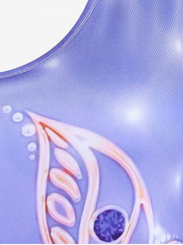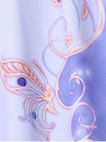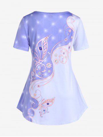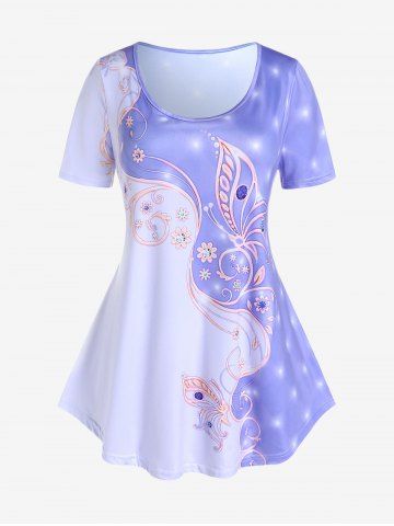 T-shirt à Imprimé Fleur en Blocs de Couleurs à Manches Courtes de Grande Taille - Pourpre - Pourpre