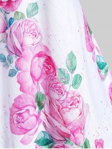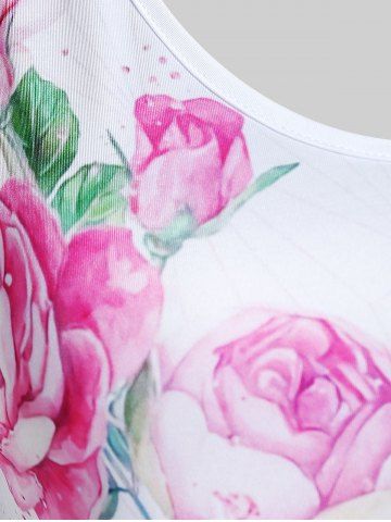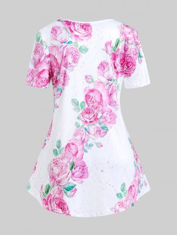 T-shirt à Imprimé Rose à Manches Courtes Grande Taille - Blanc - Blanc