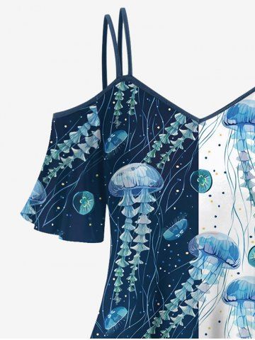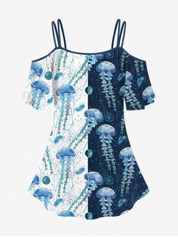 T-shirt Jointif en Blocs de Couleurs à Epaule Dénudée à Bretelle Grande Taille - Multi-a - 6x