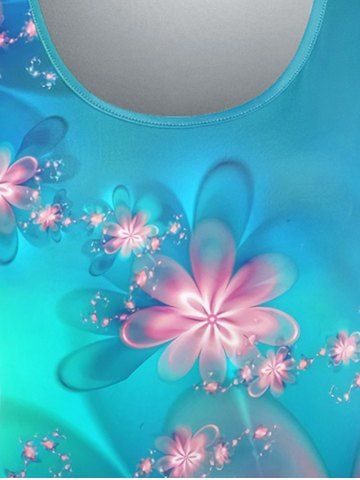T-shirt Lumière et Fleur Imprimés de Grande Taille à Manches Courtes - Bleu Clair - Bleu Clair