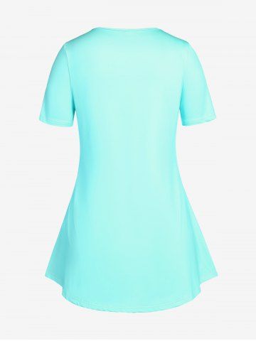 T-shirt à Imprimé Serpent Bicolore à Manches Courtes de Grande Taille - Vert Clair - Vert Clair