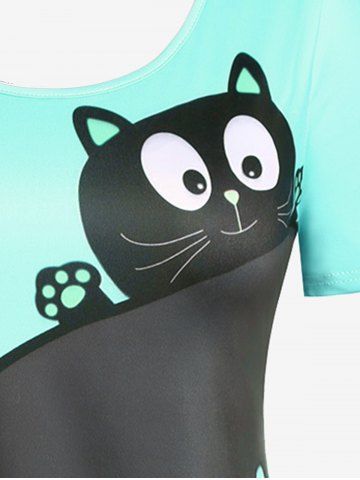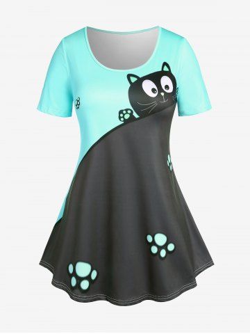 Plus Size & Curve Two Tone Cat Print Short Sleeves Tee