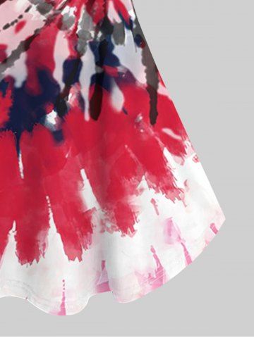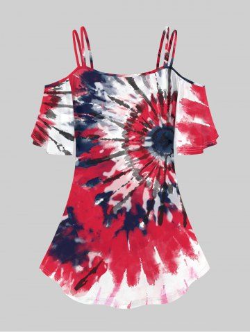 A*****a5Plus Size Cold Shoulder Tie Dye Short Sleeves T-shirtColor: RED Size: 5X | US 30-32Beautiful fabric and very soft and comfortable. Fits perfectly. I love it.