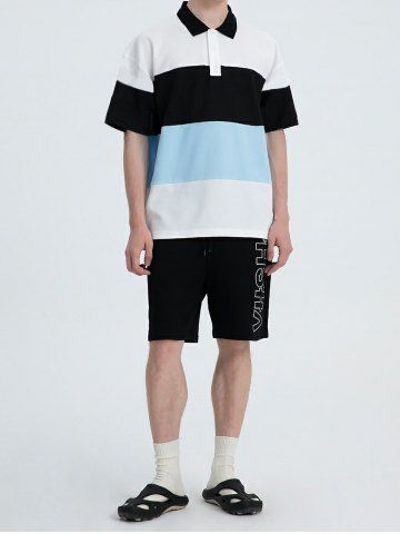 T-shirts > T-shirt Bouton en Avant Blocs de Couleurs à Col Polo