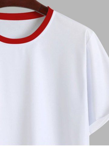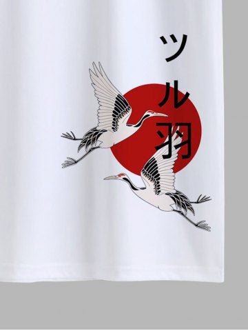 T-shirt Graphique Géométrique Grue Fleur de Pêcher Imprimé à Manches Courtes pour Homme - Blanc - Blanc