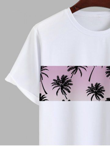 T-Shirt Hawaïen à Imprimé Cocotiers et Inscriptions pour Hommes - Blanc - Blanc