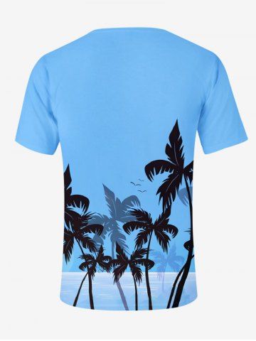 T-Shirt Hawaïen à Imprimé Cocotiers et Oiseaux Grande-Taille pour Hommes - Bleu - Bleu
