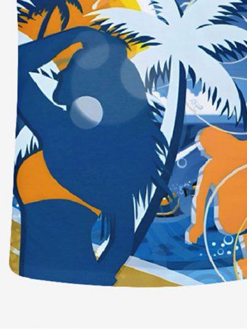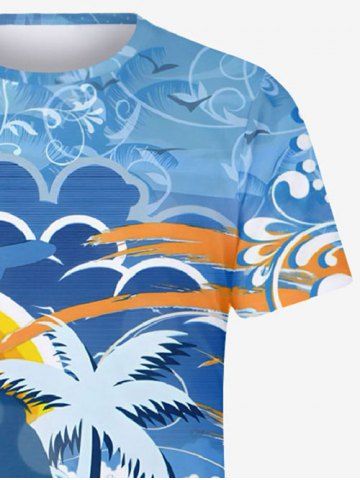 T-Shirt Hawaïen à Imprimé Cocotiers et Vagues pour Hommes Grande-Taille - Bleu - Bleu