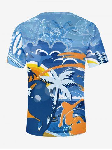T-shirts> T-Shirt Hawaïen à Imprimé Cocotiers et Vagues pour Hommes Grande-Taille