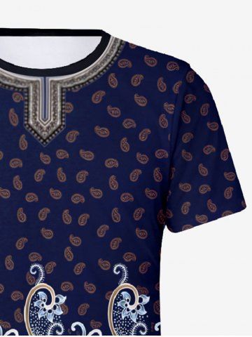 T-shirt hawaïen à imprimé floral ethnique et cachemire grande taille pour hommes - Cadetblue - S