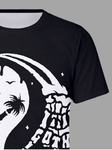 T-Shirt Hawaïen à Imprimé Tai Chi et Cocotiers Grande-Taille pour Hommes - Noir - Noir