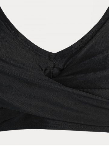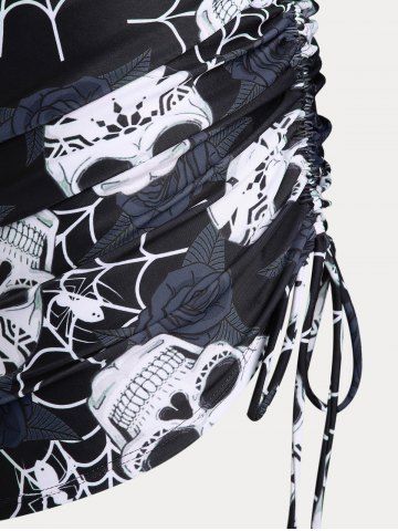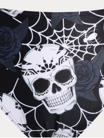 Maillot de Bain Bikini Croisé Rose et Crâne Imprimés de Grande Taille Trois Pièces - Noir - Noir
