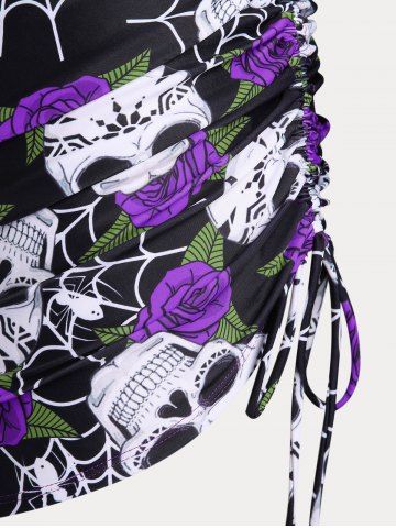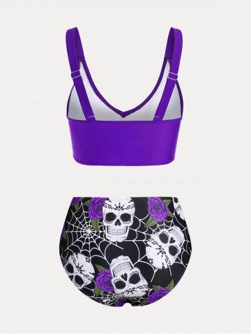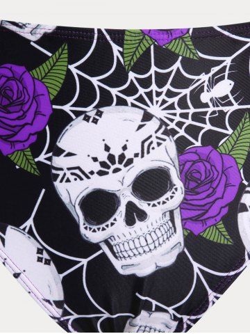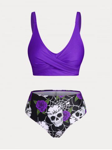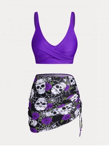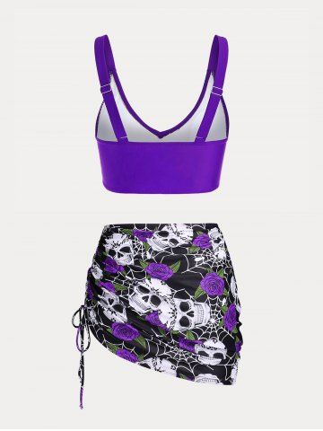 Tankinis > Maillot de Bain Bikini Croisé Rose et Crâne Imprimés de Grande Taille Trois Pièces
