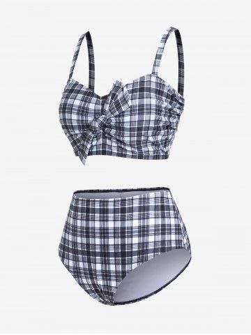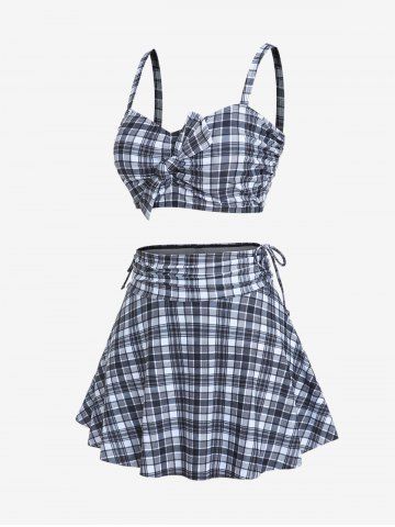 A*****e4Plus Size Plaid Cinched Bowknot Padded Longline Bikini Three Piece SwimsuitColor: BLACK Size: 1X | US 14-16The only complaint I have is the pads in the cups moving around and folding up. Otherwise it's amazing the bottoms are full coverage and the whole suit makes me feel great wearing a bikini.