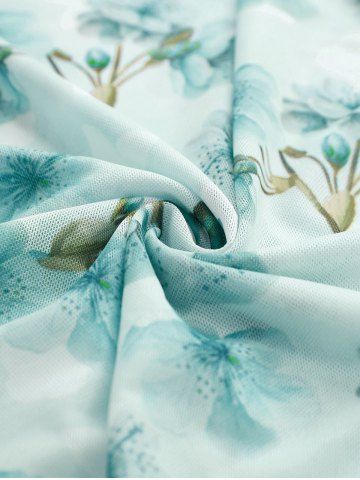 Maillot de bain tankini 3 pièces imprimé fleurs de pêcher ombré, décolleté plongeant et nœud papillon. - Émeraude - 3x | Us 22-24